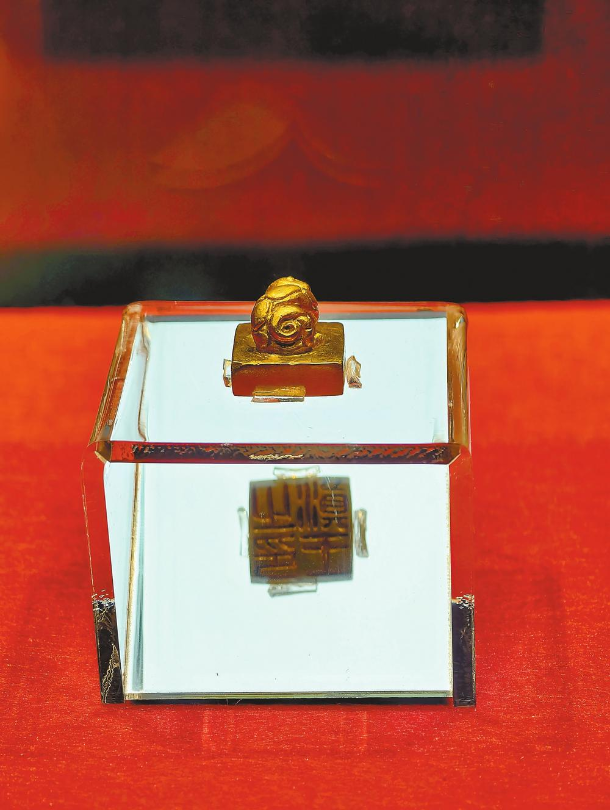 出土于石寨山墓地的“滇王之印”(仿制品)。 记者 刘薇薇 摄