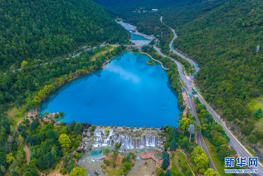 航拍玉龙雪山景区蓝月谷风光(9月8日摄)。新华网发(徐俊 摄)
