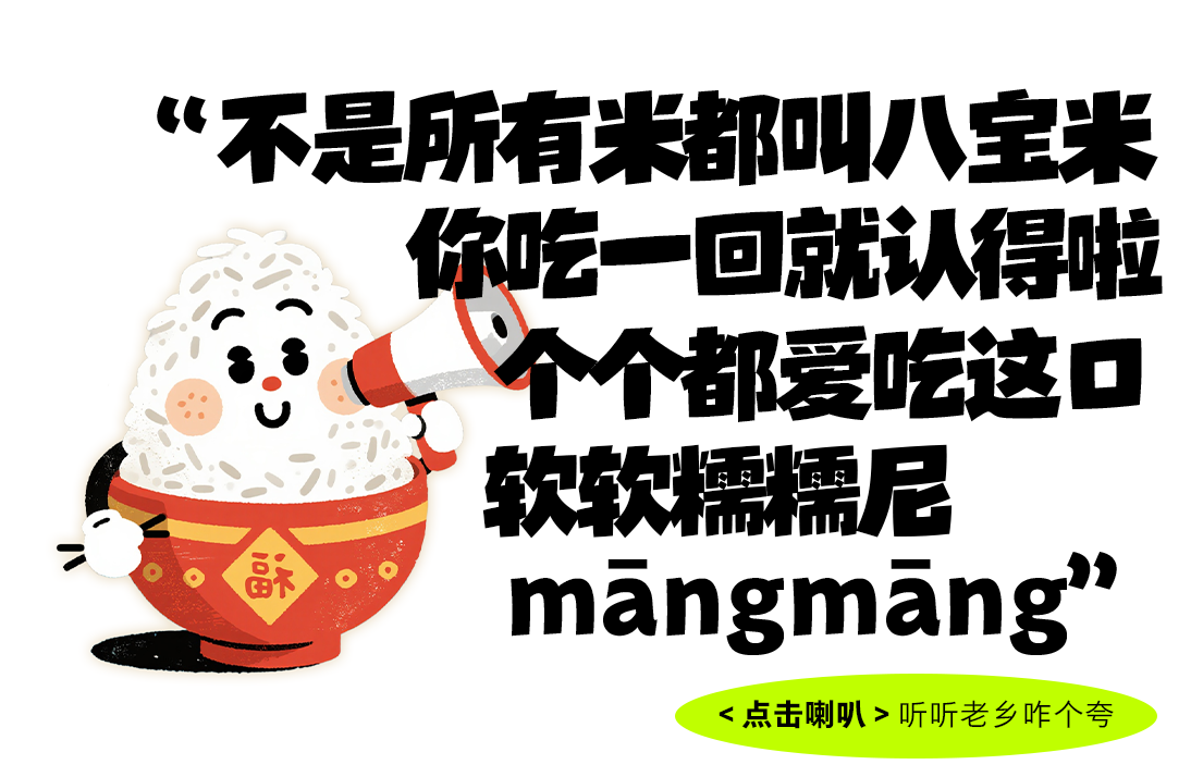 “米粒圆润、白里透青、软糯适中、清香回甜!吃八宝米,享宝藏人生~”