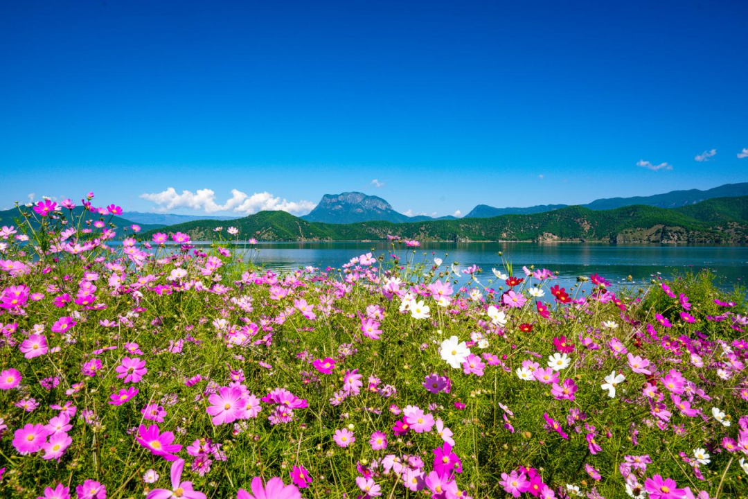 原标题:秋游丽江丨秋日泸沽湖畔格桑花开成海