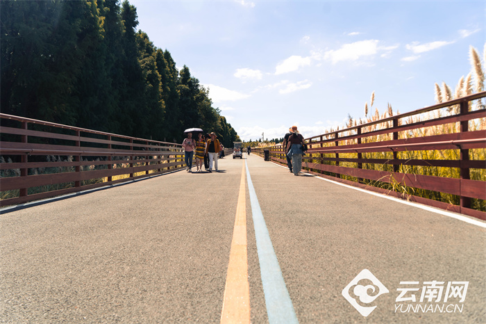 昆明市文化和旅游局工作人员表示,草之桥所在的滇池绿道串联16个景观节点,双节期间将增加志愿服务岗保障游客安全。目前,从昆明市区乘坐地铁3号线转乘公交,可直达草之桥附近站点,方便游客前往感受自然与人文交融的假期体验。