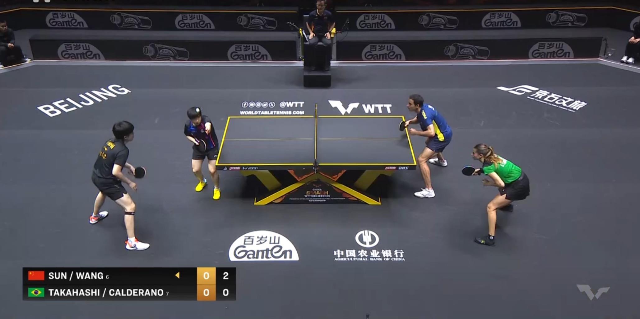 2025WTT中国大满贯混双半决赛,“莎头”组合王楚钦/孙颖莎3比0战胜巴西组合雨果/高桥布鲁娜,成功晋级决赛,与稍早前率先晋级的中国组合黄友政/陈熠会师,中国队提前包揽混双冠亚军。