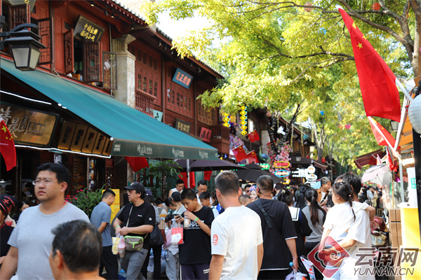 街巷红旗飘扬,商场人潮涌动,市集烟火升腾……自进入国庆中秋假日以来,昆明各大商圈凭借“文旅+商业”深度融合、特色活动精准引流,迎来人气与消费双重爆发。无论核心地标还是新兴商圈,从日间繁华到夜间璀璨,春城商圈消费市场的蓬勃活力持续释放,多样“玩法”激活假日经济。