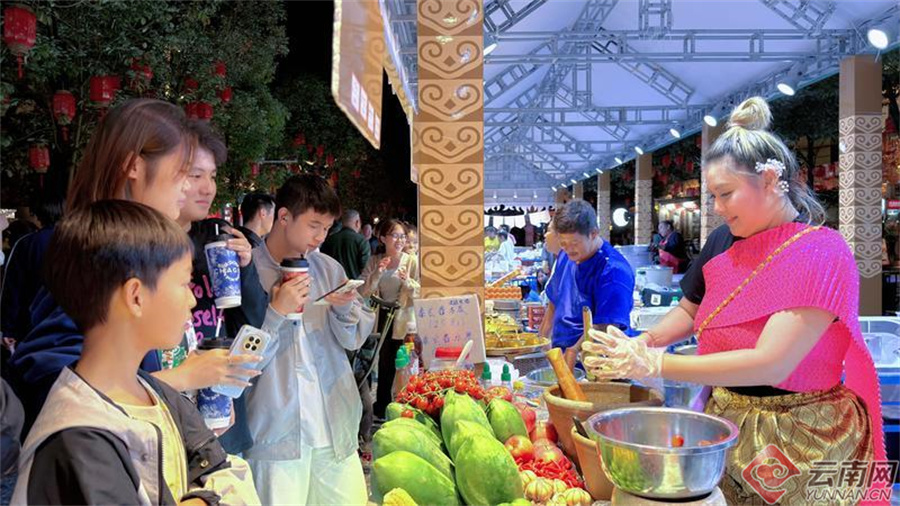 市民游客在官渡古镇品尝云南美食。王毅 胡妤雅 摄