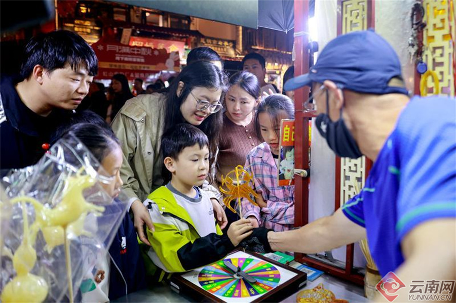 市民游客在官渡古镇购买“非遗”糖画。胡妤雅 王毅 摄