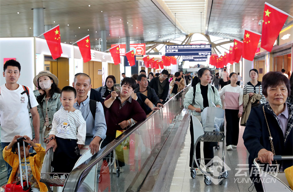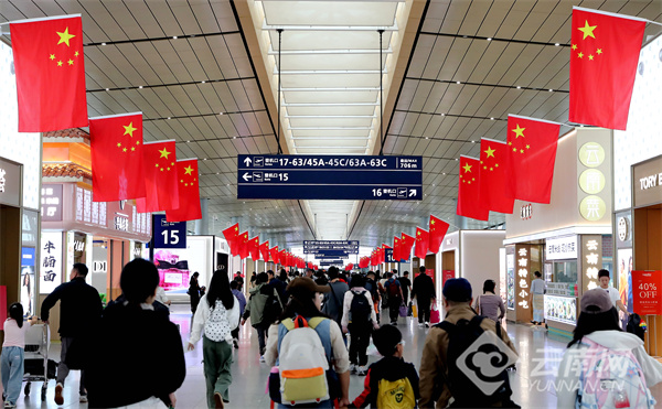 10月8日,国庆中秋假期进入尾声,迎来返程客流高峰,昆明长水国际机场采取有效举措,确保旅客安全顺畅返程和节日高峰客流航空运输平稳收官。