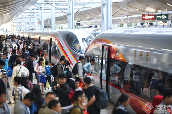面对多重客流叠加的压力,国铁昆明局提前制定运输方案,实行高峰期运行图,通过增开临客、动车组重联、普速加挂、开行夜间高铁等多种方式全力扩充运能。假期高峰日共增开临时旅客列车69列,包括直通临客16列、管内临客53列,特别是针对大理、丽江、香格里拉、西双版纳等旅游热点地区,重点加强滇西、滇南、滇东及昆明至大理等热门方向的运力供给。针对进出云南的长途客流,增开了北京西至昆明南的高铁动卧列车,并开行昆明至成都、重庆等方向的夜间动车,有效疏解高峰压力。