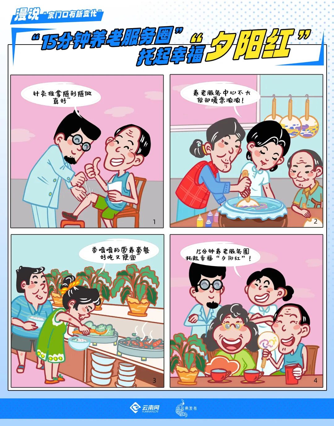 即日起,云南网联合云南发布共同策划推出【漫说“家门口有新变化”】系列融媒报道,聚焦我省就业、教育、医疗、“一老一小”等民生领域,从“小故事”看大变化。第二期,咱们走进曲靖“15分钟养老服务圈”,看看当地是如何托起幸福“夕阳红”?