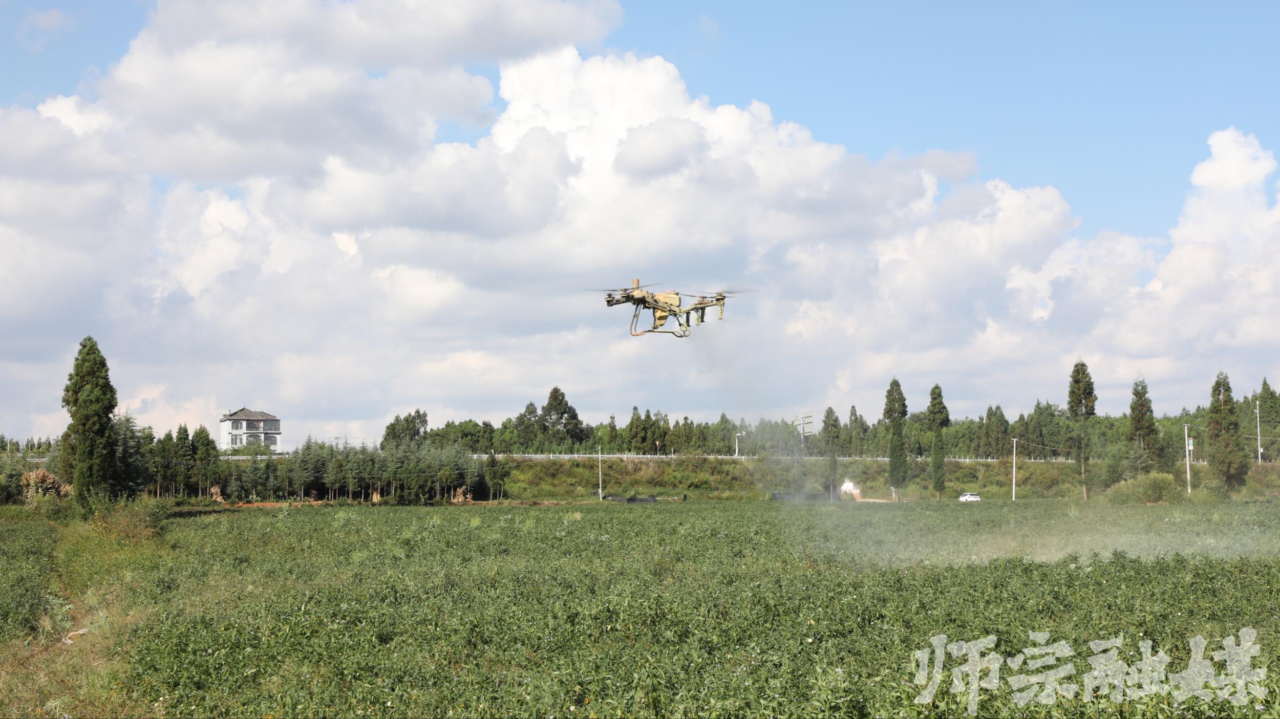 田间地头,除了有果农们忙碌采摘、分拣、装车的火热场景,还有“空中管家”在专心作业。农业无人机在技术人员的遥控下腾空而起,旋翼下压的气流让茂密的果叶层层翻涌,并精准地将药雾洒向田间。