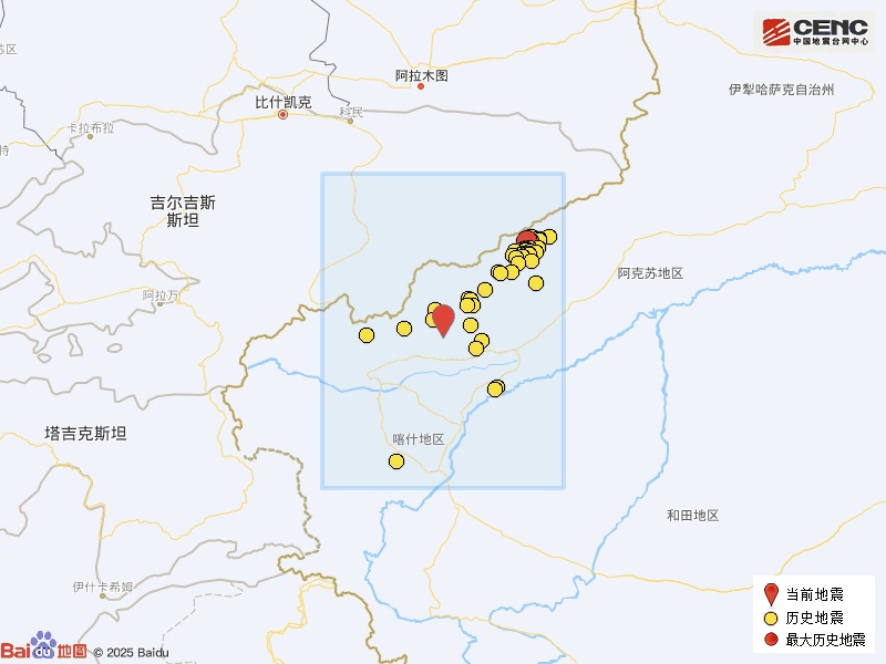 央视网消息:据中国地震台网微信公众号消息,据中国地震台网正式测定,10月20日17时45分在新疆克孜勒苏州阿图什市发生3.9级地震,震源深度29公里,震中位于北纬40.17度,东经77.22度。