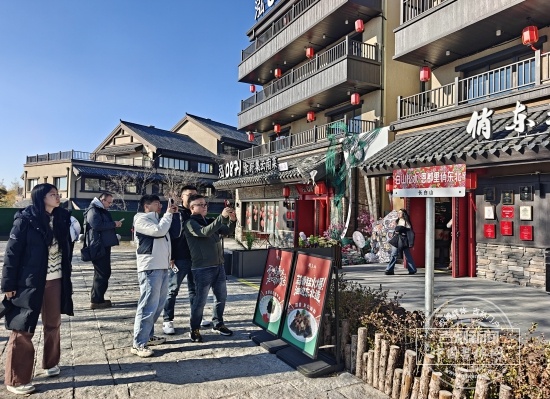 午后,采访团走进充满满族风情的恩都里休闲街区。“恩都里”在满语中意为“神灵”,寄托着对长白山的敬畏之情。这里融合民俗展示、创意市集、特色餐饮等多元业态,打造出沉浸式文化度假体验,成为长白山文旅融合的新地标。