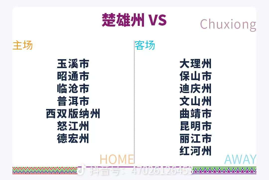 11月6日晚,2025/2026云南省城市足球联赛抽签结果出炉。根据赛制,第一阶段主客场单循环赛制,其中丽江、昭通、大理、临沧、玉溪、迪庆、德宏、保山将有8主7客的比赛;西双版纳、文山、曲靖、昆明、楚雄、普洱、红河、怒江将有7主8客的比赛。具体抽签结果如下: