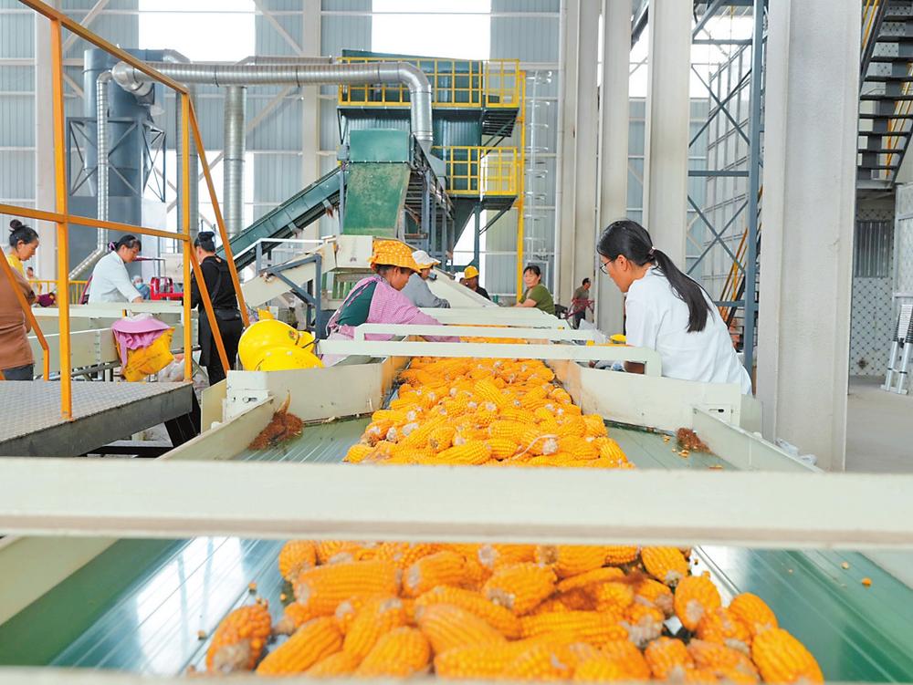 制种玉米分选加工生产线。记者 刘宇丹 摄