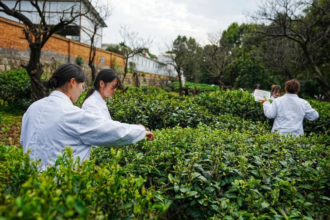 他们是“茶农”,在学校的茶园里采摘秋天里的最后一拨鲜叶;他们还是研发师,在实验室里试制茶饮,研发功效多样的茶护肤品……