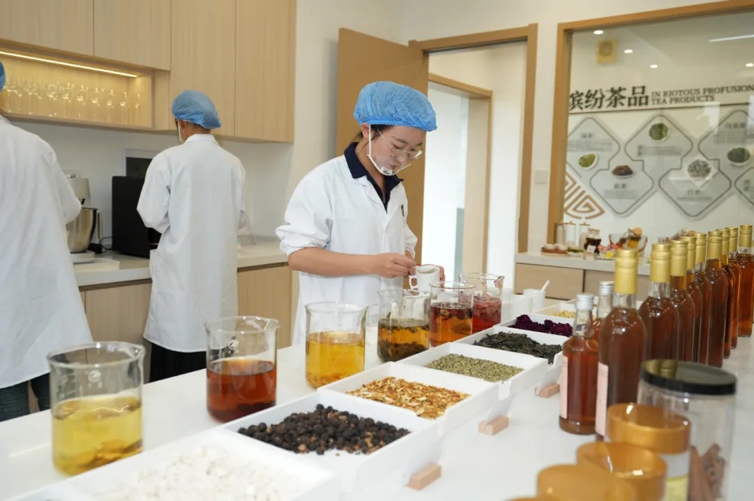 之前,茶学院的师生们将云南特色的普洱茶与滇橄榄结合,经过反复配比调试,创造出令人惊喜的风味。此外,他们还将滇红茶与“九蒸九晒”的滇黄精结合,研发出一款风味与健康属性兼具的“滇黄精红茶”。