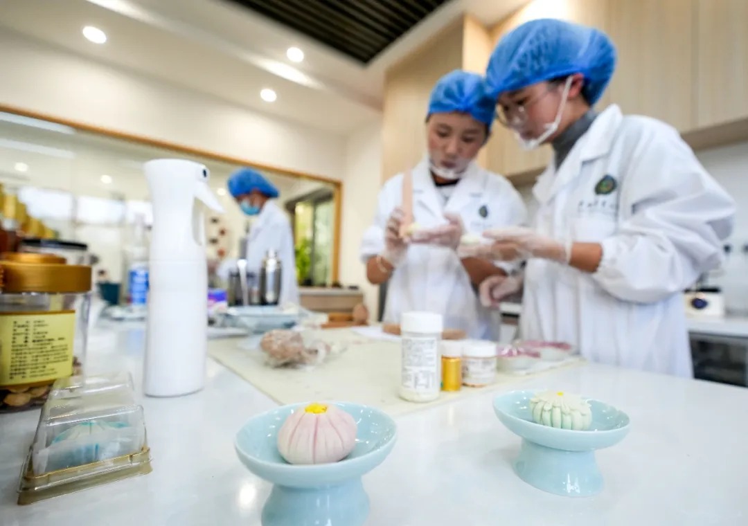 除了喝的,实验室的创意还延伸到了“吃的”。学生们尝试将茶粉、茶汁融入甜点中,创造出风味独特的“茶果子”。