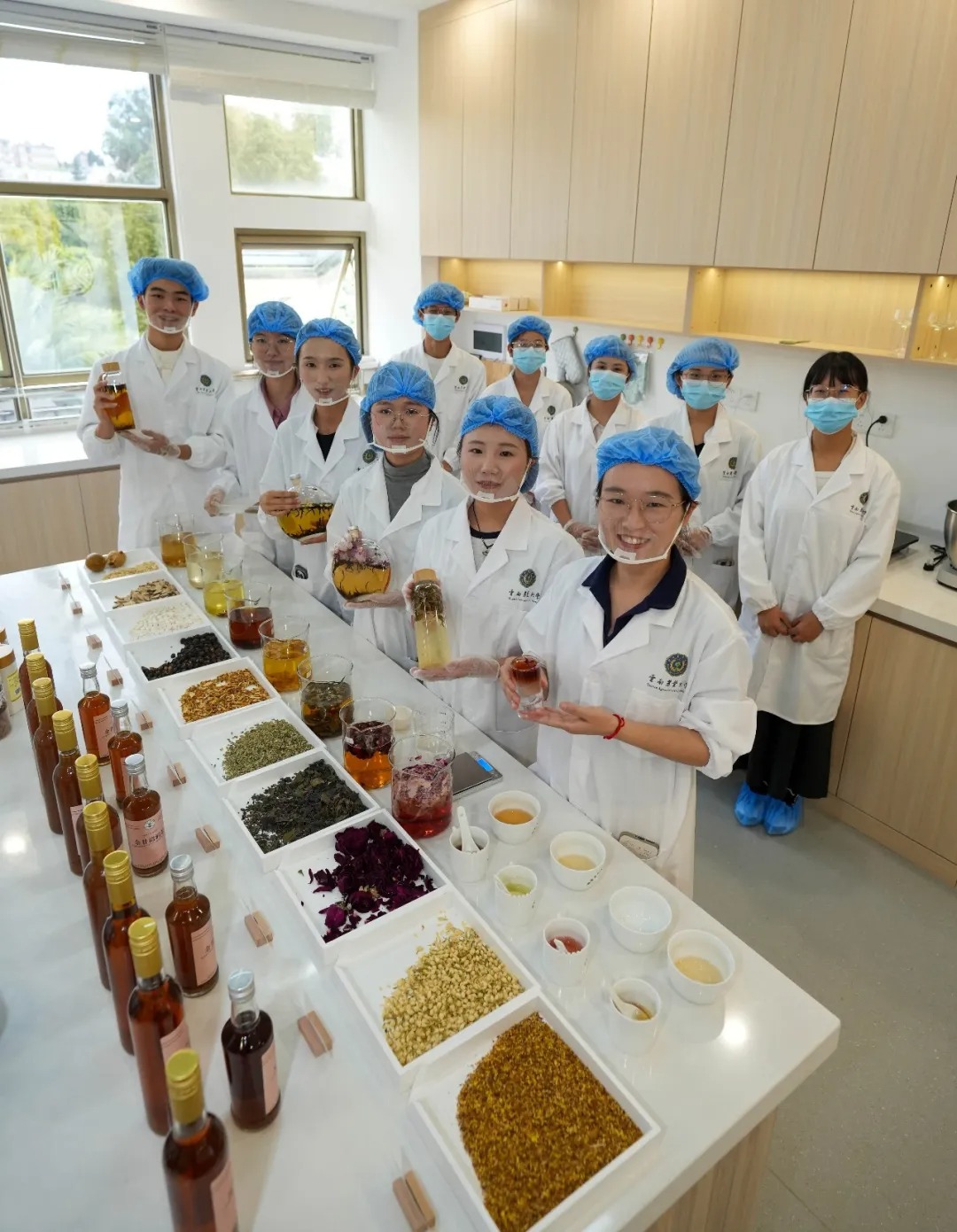 学生们在实验室研制茶饮。