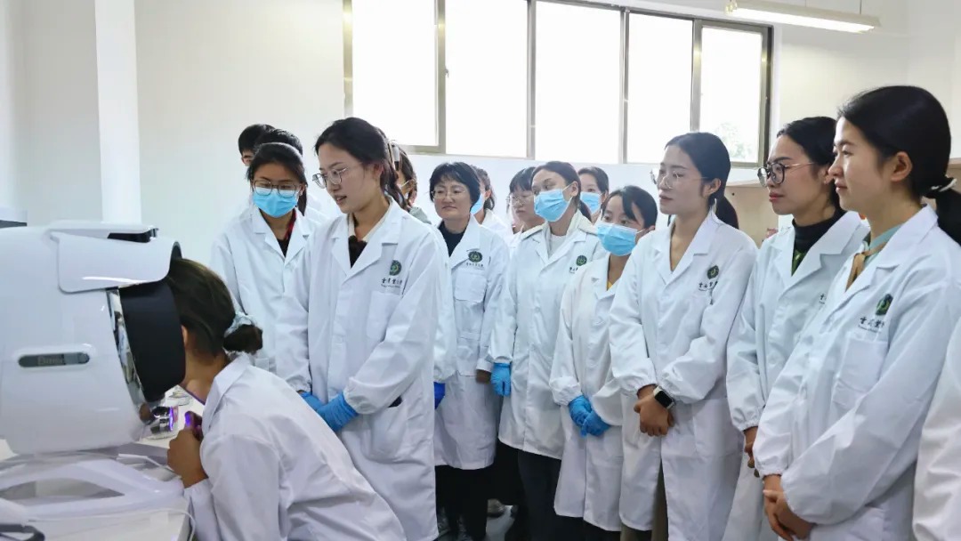 同学们采用皮肤AI诊断仪进行皮肤测试,建立茶日化应用效果数据库。(受访者供图)