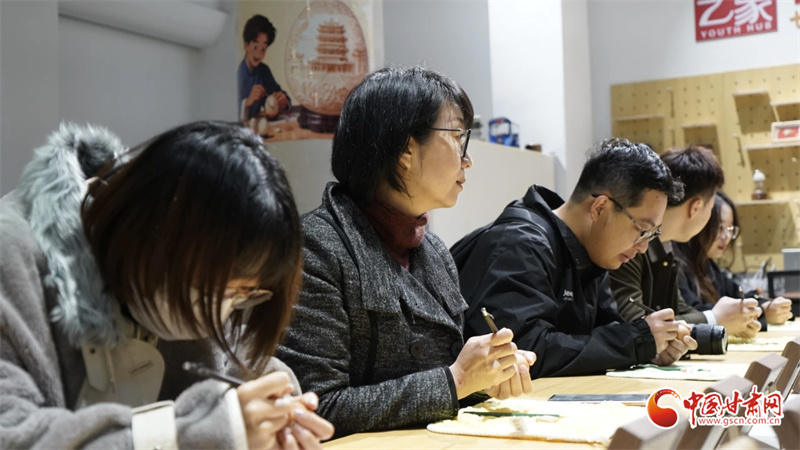 兰州老街非遗传承青年之家里,甘肃省级非遗项目“兰州蛋雕”传承人杨雪飞现场授课。30名媒体青年在0.3毫米蛋壳上刻下“青春兰州”字样,完成专属非遗作品,并在地图上加盖“非遗印章”。