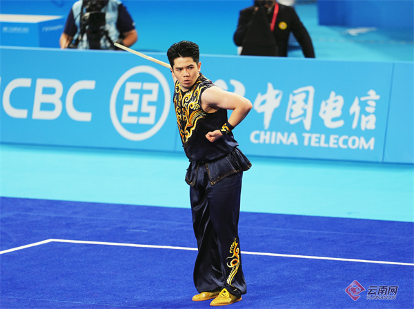11月7日晚,云南省体育代表团第十五届全国运动会竞技体育项目首枚奖牌在广州诞生。24岁的武术小将余迪昊凭借良好的竞技状态和出色的表现,在武术套路男子南拳南刀南棍全能比赛中分别以单项9.800分,总成绩29.400分排名第二摘得银牌。
