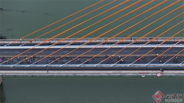 骑行选手穿过西双版纳新大桥 11月8日摄
