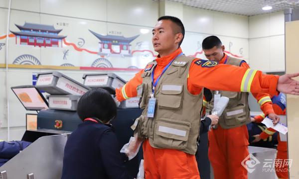 在演练过程中,全体指战员抵达丽江三义机场后,丽江机场立即启动专项工作方案,机场各部门、单位相关人员立即到达指定地点做好准备,开通快速保障通道,设立消防救援人员专属值机柜台,快速办理登机牌和托运消防救援装备;增开安检通道,全力保障消防救援人员快速通过安检;协调行李货运人员,优先保障消防救援装备装机。