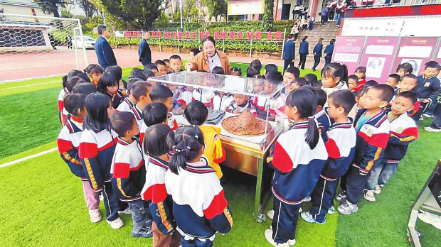 禄丰市高峰乡中心学校师生参观流动博物馆展览。 通讯员 金娜 摄