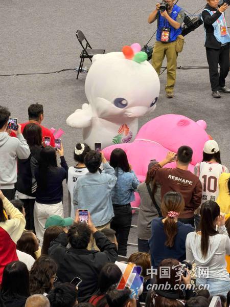 不止于此,记者在东莞篮球中心、深圳大运中心游泳馆、深圳宝安体育中心体育馆等不同场馆内,都遇上了可爱有趣的“大湾鸡”。