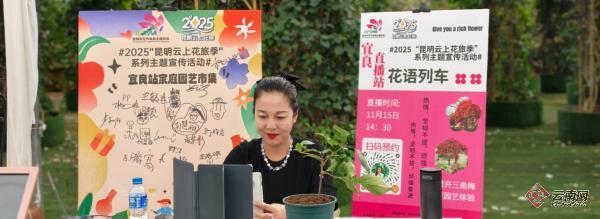 当三角梅的嫣红缀满枝头,云海般的花浪漫过宜良山野,一场“花卉+文旅+电商”的融合盛宴正式启幕。11月15日,“2025昆明云上花旅季”暨宜良家庭园艺市集之旅在为君开三角梅博览园举行。