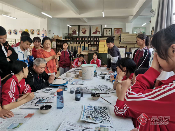 王阳普讲起,不久前的一天,他照常给陶碗坯体画鱼,画完鱼身,他去往曲靖特殊教育学校授课,学生们在课上跟着他的示范勾勒缠枝纹,有个聋哑女孩用指尖轻触陶坯确认纹路走向,动作与他当年对着老罐临摹时如出一辙。