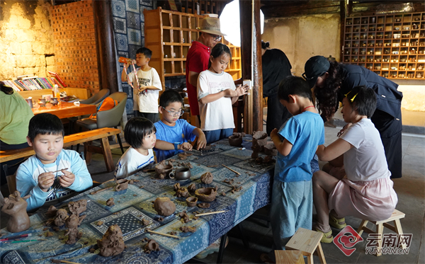 不远处,一个小女孩牵着奶奶的手慢慢走过,时不时会停下脚步,伸出指尖轻轻触摸路旁的土砖墙。奶奶转过身,掌心的老茧蹭过砖纹,轻声说着:“这砖里啊,可藏着你太爷爷烧窑的故事。”祖孙俩的身影渐渐走向小路尽头,画家笔尖顿了顿,把这一幕也画进了画里。在云南曲靖,潦浒的突围与新生藏在老砖里、画笔间、祖孙对话中,更藏在每个守艺人、创艺人的执着与坚守里。