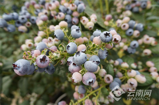 2020年以来,云南蓝莓产业从10多年前的零星种植一跃而起,成为全球蓝莓种植户版图上的强劲新势力。数据显示,2024年末云南蓝莓栽培面积达24.9万亩,占全国面积的17%,产量17.1万吨,占全国产量的22%,栽培面积和产量均居全国首位。当年,云南蓝莓年产值突破170亿元,带动就业人数超过20万人。