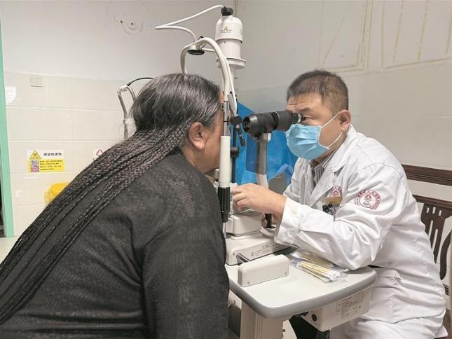 主治医师张永明为患者术后检查。拉毛措 顾植霞 摄