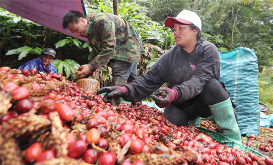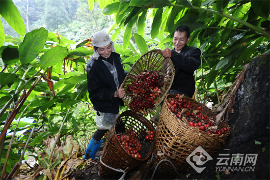 眼下已进入草果集中采收期,在怒江傈僳族自治州福贡县拉马底村,傈僳族草果农户和驻村队员一起冒雨进行采收、分拣和运输草果。
