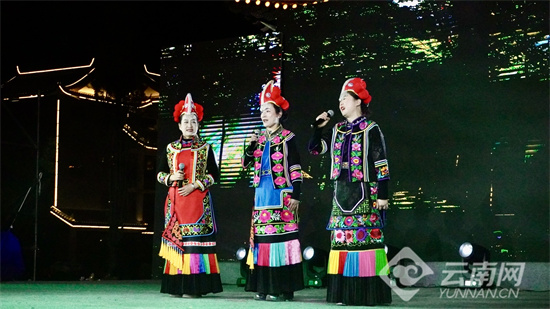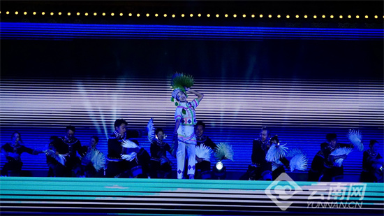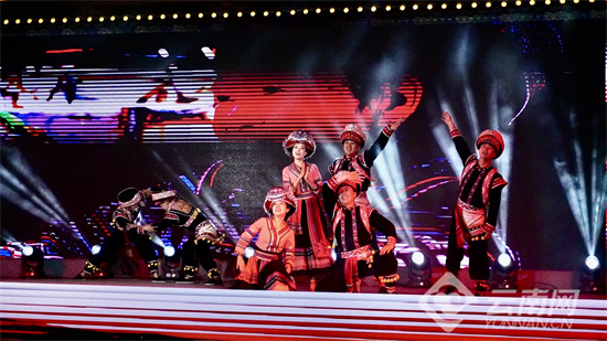 晚会现场,来自昆明市、红河州、楚雄州、德宏州等4个兄弟州市的10项非物质文化遗产代表项目轮番登场。红河州屏边县的舞蹈《闹花山》还原了苗族花山节的欢腾盛景;楚雄州文化馆的彝族歌曲《阿噻调》以清澈曲调诉说彝乡深情;玉溪市元江县的哈尼族棕扇舞《云中棕韵》展现国家级非遗的古朴神韵;德宏州的《景颇器乐联奏》奏响洞巴、吐良等传统乐器的独特韵律;昆明市石林县的歌舞《阿诗玛的回声》让彝族叙事长诗焕发新生……各项表演将民族风情与时代活力完美融合,赢得现场观众阵阵掌声。
