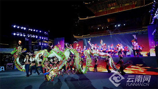 晚会尾声,全体演员共同带来歌舞《和合共融》,象征各民族文化的交融共生。随后,现场开启广场互动环节,打铁花、风火轮、火壶等非遗技艺轮番上演,观众与演员一同“点彝火、唱彝歌、跳彝迪”,在沉浸式体验中感受非遗的活态魅力。