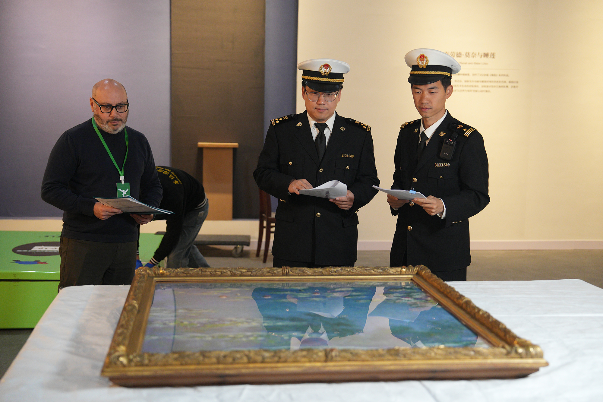 12月1日上午,宁波博物馆一楼西特展馆,在宁波博物院、芝加哥艺术博物馆、鄞州海关工作人员以及媒体记者的共同见证下,“莫奈之诗:从Chicago到三江口的东西方美学对话”展览的重点参展文物——莫奈《睡莲》《睡莲池》与莫奈肖像画慎重开箱。