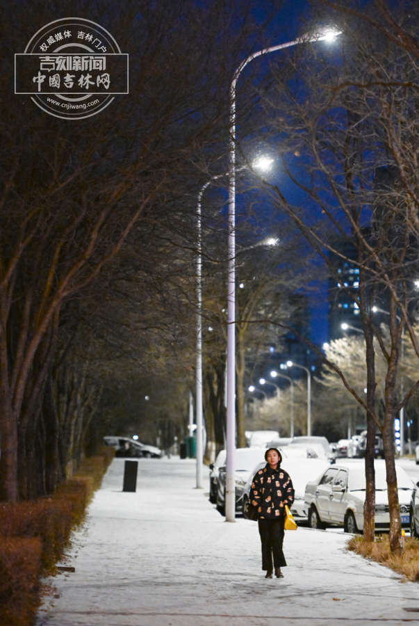 12月1日,夜幕时分,长春迎来降雪天气,城市瞬间覆上静谧银装。雪落无声,灯火温润,冬夜的美好悄然弥漫。