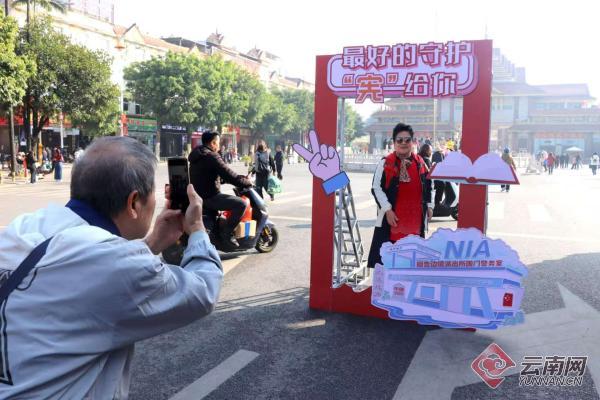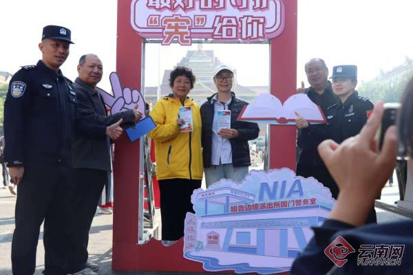一旁的“我与宪法合个影”打卡点同样人气高涨。游客们手持宪法单行本、宣传册,站在国门前留影。民警一边协助拍照,一边结合姐告区位特点讲解维护国家统一、民族团结等与群众息息相关的条款。“我们生活在国门一线,更应当自觉维护宪法权威,做守法群众,共同守护边境和谐稳定。”当地一名商户李先生说。