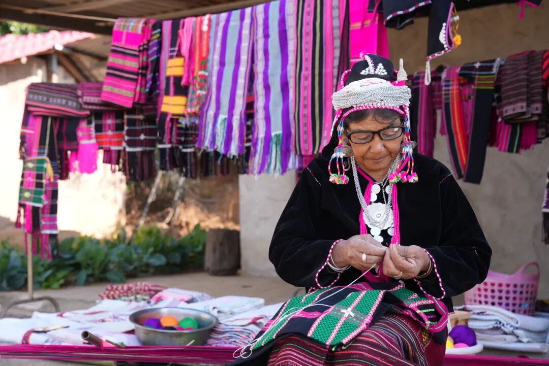 从15岁跟着村寨里的织锦能手学艺,到20岁便能独立编织服饰、挂包,半个世纪的时光里,织机成了娜汉最亲密的伙伴,也见证了她从学徒到非遗传承人的蜕变。“织锦技艺是我们佤族的根,要一代一代传下去。”娜汉说。