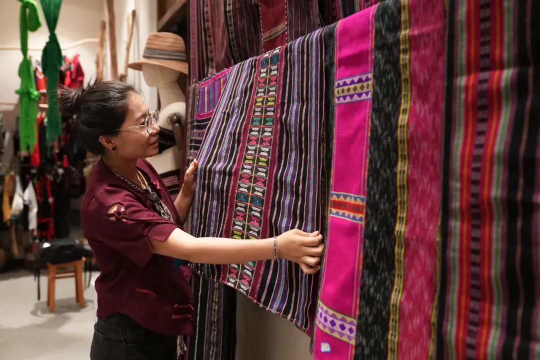 如果说娜汉是佤族织锦“守根”的代表,那么“90后”非遗传承人廖静文,则是这门技艺“破圈”的践行者。