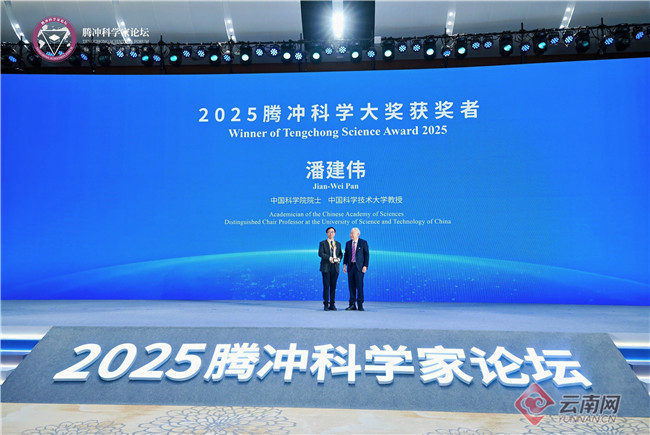 云南网讯(记者 高祎祎 期俊军 娄新月 张梅焕 )12月6日,2025腾冲科学家论坛开幕式上颁发2025腾冲科学大奖,中国科学院院士、中国科学技术大学教授潘建伟获此殊荣。