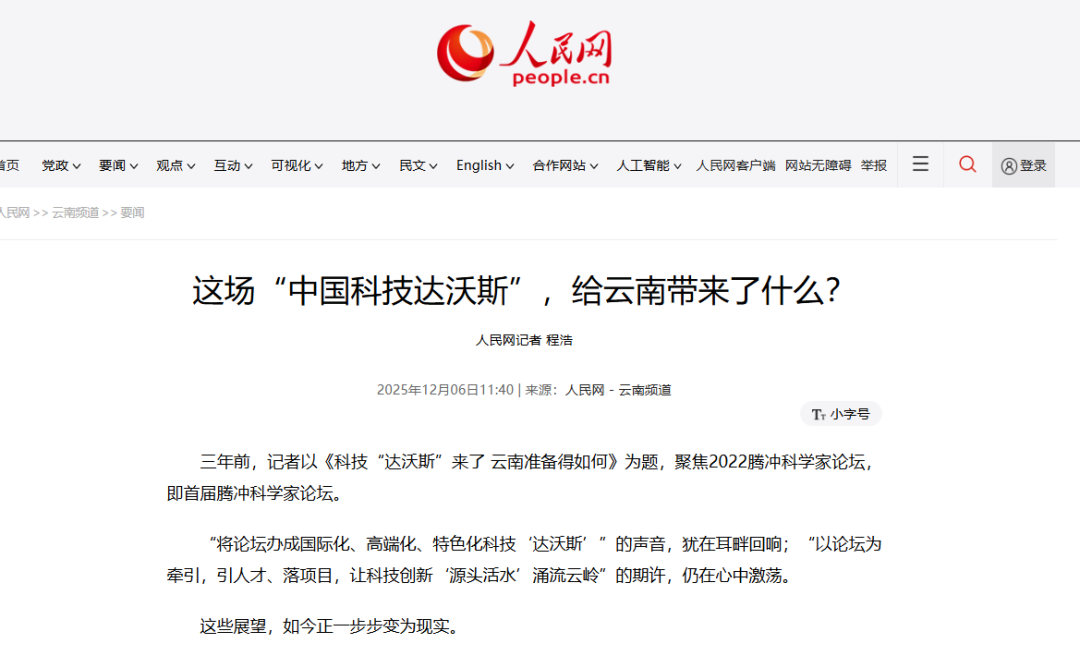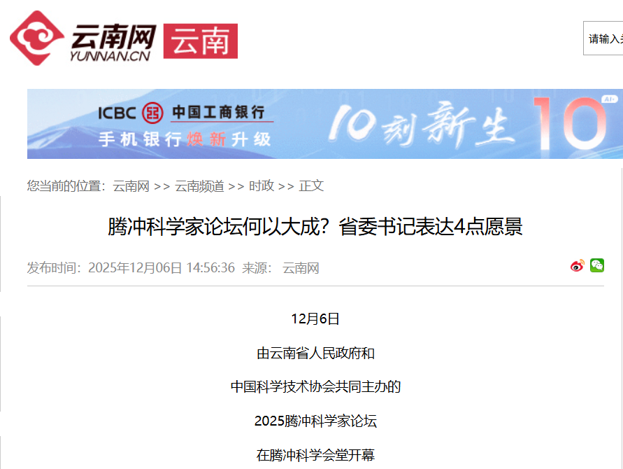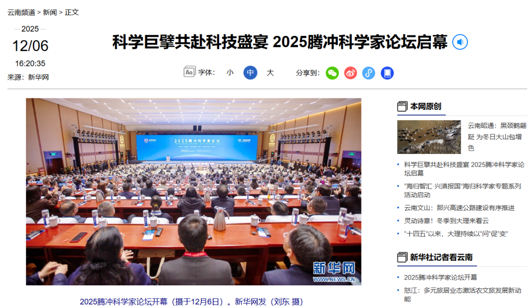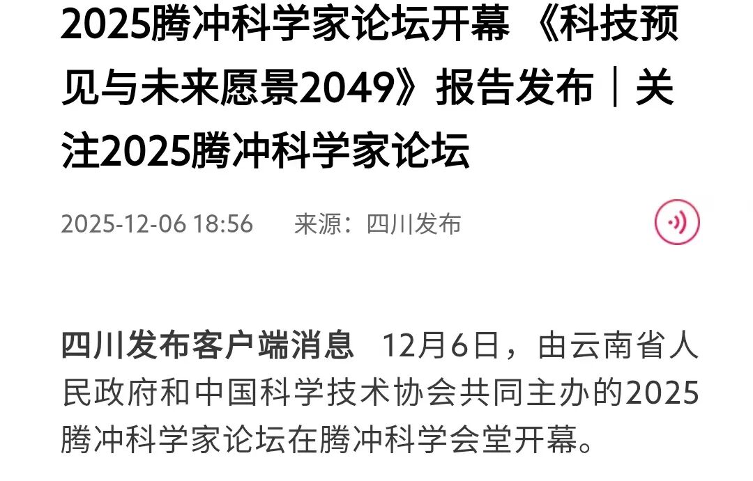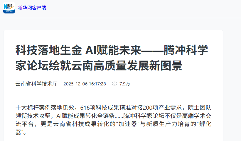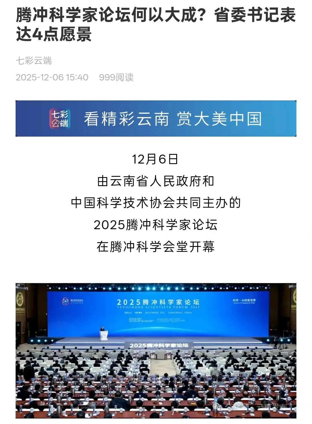 2025腾冲科学家论坛今天(12月6日)开幕,将举办大学校长论坛、青年科学家论坛等10场分论坛,与会的120多位院士、70多位国内外大学校长围绕“科学·AI改变世界”这一主题展开探讨交流。
