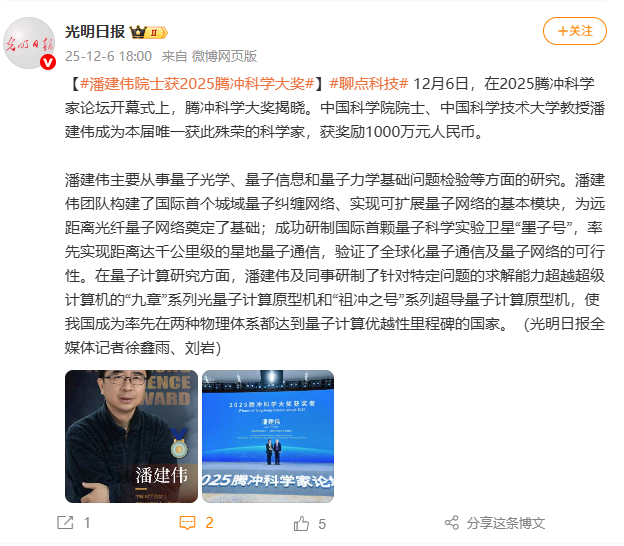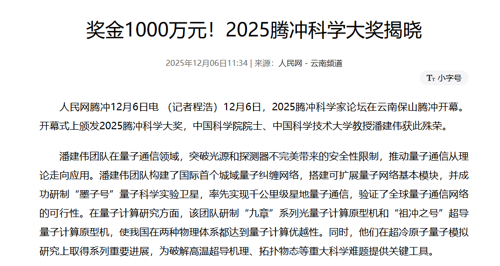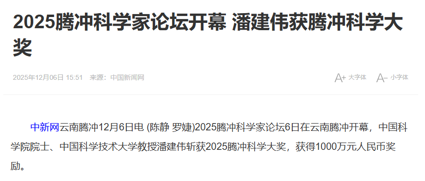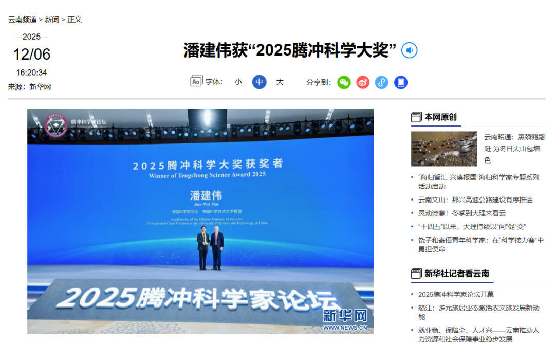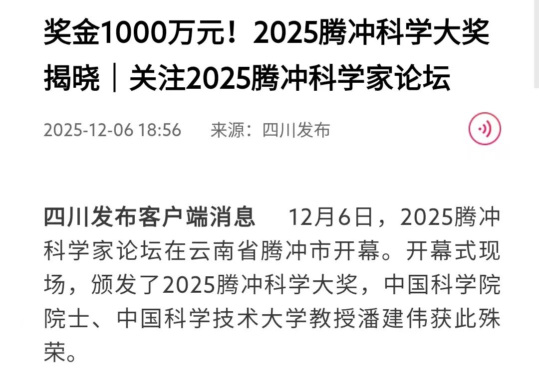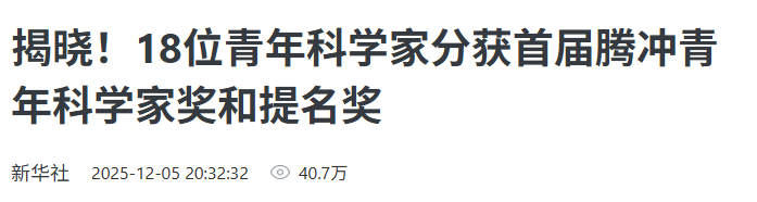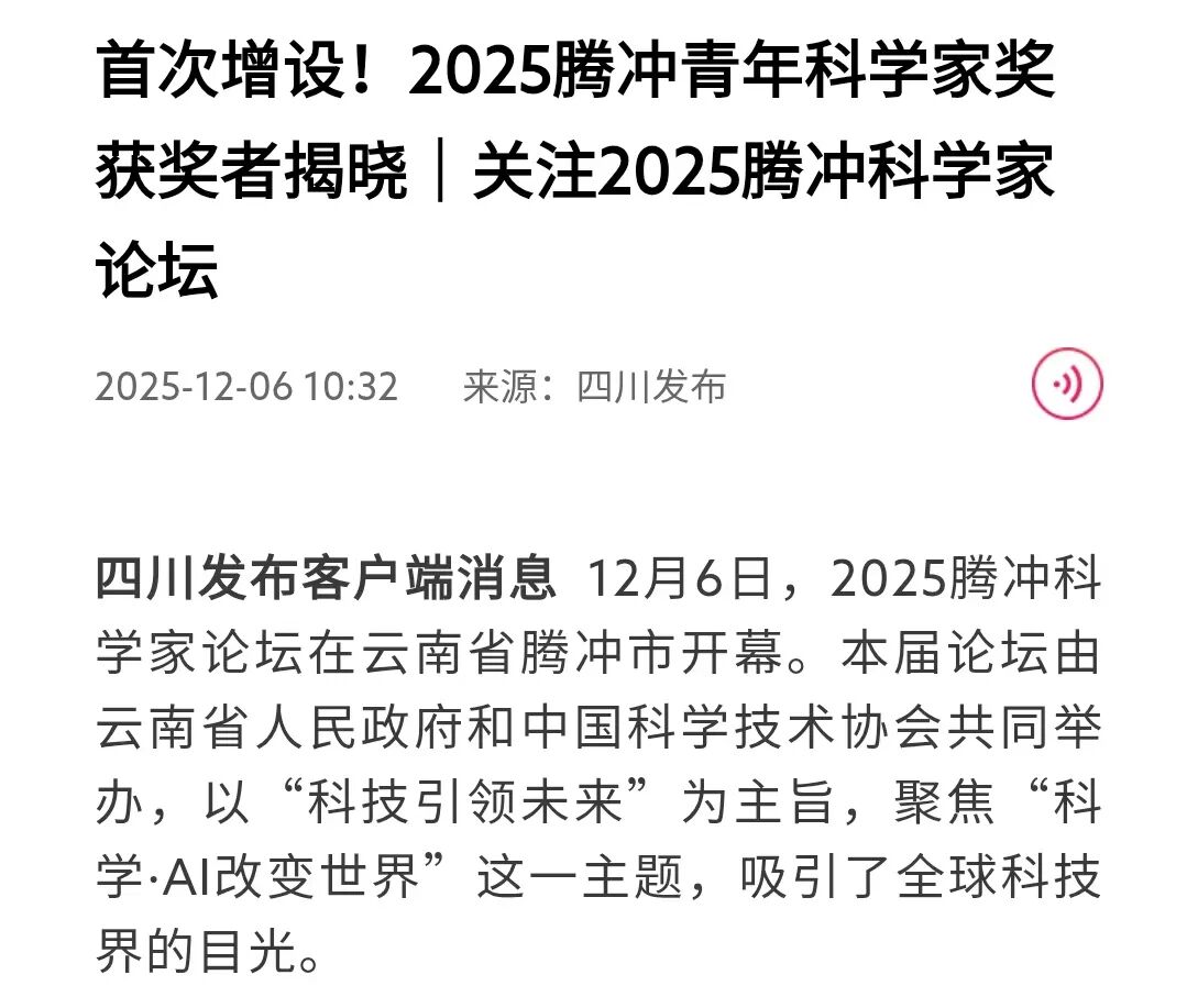 12月5日,2025青年科学家论坛在云南省保山市腾冲市举行,首届腾冲青年科学家奖在论坛上正式揭晓,北京大学物理学院博雅特聘教授王剑威、中山大学物理学院教授王猛等18位青年科学家分获大奖和提名奖。