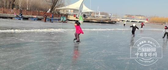 冬日的长春净月高新区柳荷公园,天然冰场如一块澄澈的“蓝宝石”,静卧于北国大地。