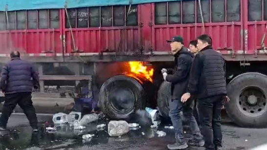 货车高速轮胎起火,山西男子连续5次钻进车底灭火