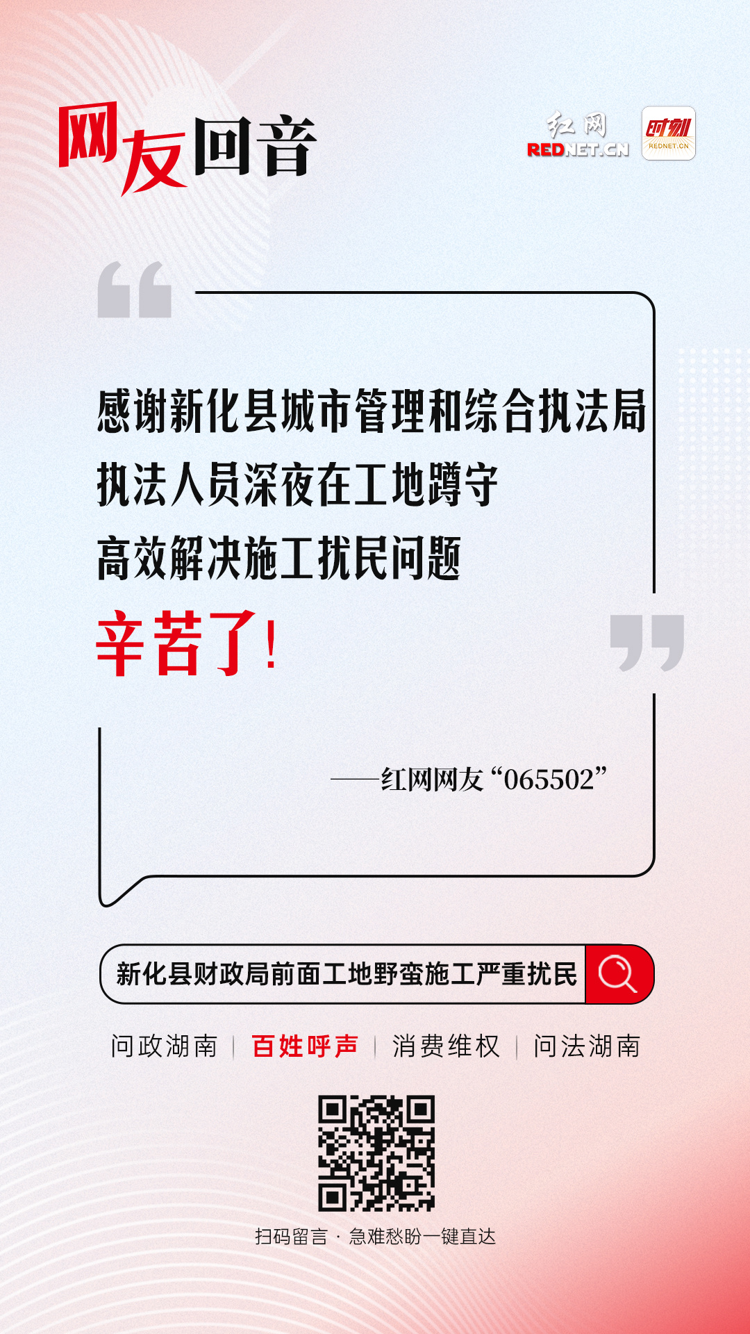 原标题:网友回音丨感谢新化县城市管理和综合执法局,工地施工扰民问题已解决