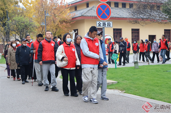 在12月3日,即第34个国际残疾人日当天,昆明市残疾人联合会携手云南省图书馆共同主办了2025年昆明市“春城暖阳”扶残助残党建联建共建文化助残暨视障群体文化体验活动。百余名视障群众及其家属、志愿者齐聚一堂,漫步于西南联大的浓郁书香与文林街的银杏金黄之间,共同度过了一段融合历史底蕴与自然诗意的难忘时光。