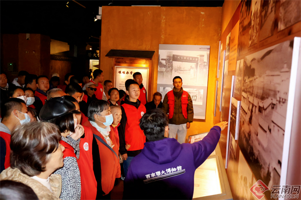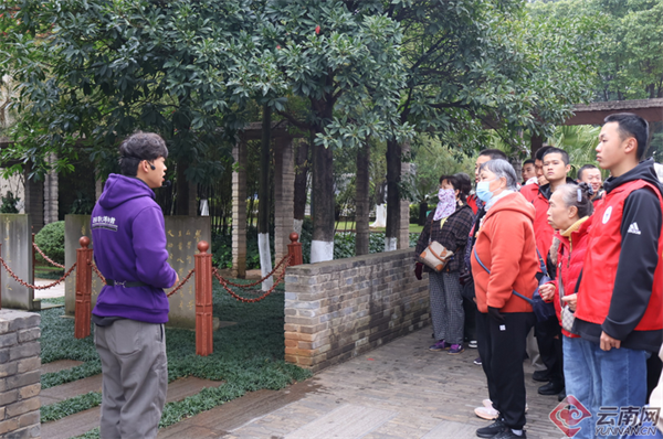 早上9点,在云南省图书馆和云南警官学院志愿者的陪同下,参与活动的视障群众及家属来到西南联大仿制门前,早已等候在此的博物馆讲解员立刻上前迎接,为视障朋友们开启了一场特殊的“听觉之旅”。“西南联大是抗战时期由北大、清华、南开三所大学南迁昆明组建而成,这里承载着中华民族‘刚毅坚卓’的精神密码……”讲解员的声音温润而有力量。视障群众李叔叔感慨道:“西南联大的精神太让人感动了,这是我们民族的宝贵财富”。