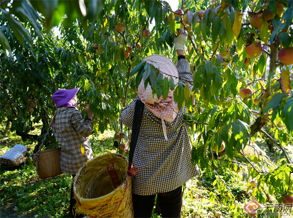 种植户杨明修穿梭在自家桃园里,看着满树果实,脸上满是笑意。“我种了70多亩冬桃,亩产在2吨左右,每年能赚八九十万元,采摘旺季得用到八九十个工人。”作为种了15年冬桃的“老把式”,他见证了冬桃产业从起步到壮大的全过程。